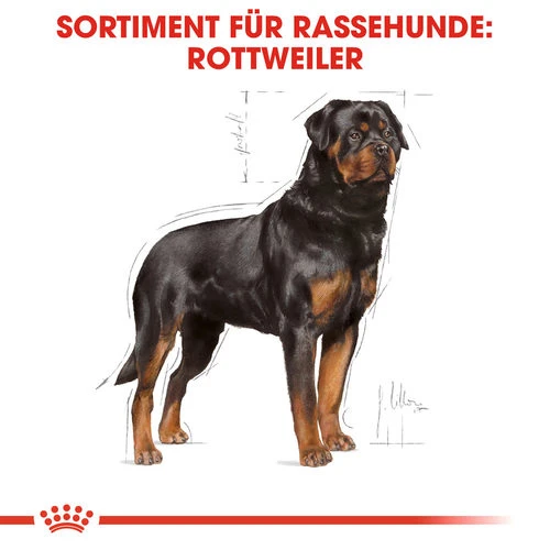 Die meisten Rottweiler haben von Natur aus einen muskulösen Körperbau. Einige Hunde dieser Rasse haben einen ruhigen Charakter, aber ihr Temperament macht diese Hunde auch zum perfekten Wachhund. Speziell für diese starken Hunde ist Rottweiler Adult von Royal Canin entworfen. Das Futter ist speziell auf die Bedürfnisse dieser Hunderasse abgestimmt. Durch die angepasste Krokettengröße kann Ihr Rottweiler das Futter einfach aufnehmen und kauen.